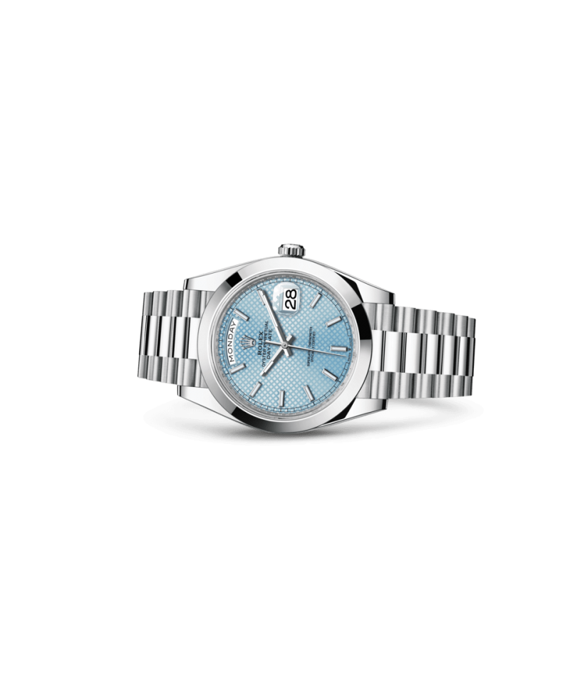 アイスブルーダイアルはロレックスのプラチナ製時計の控えめかつ特別なシグネチャーである。ロレックスは最高級の腕時計にふさわしい最も高貴な金属であるプラチナを使用している。