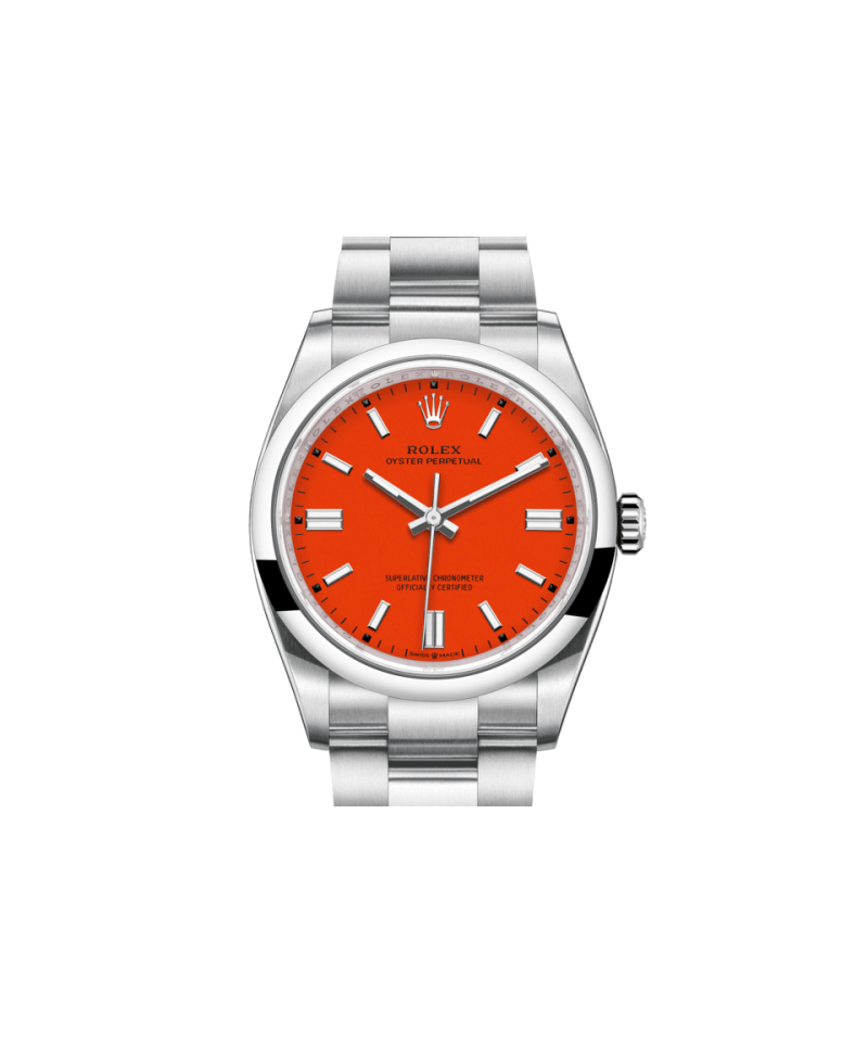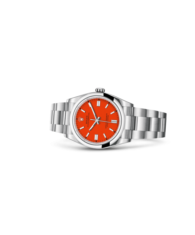 オイスターブレスレットは、形と機能、美しさと技術の完璧な融合である。1930年代後半に初めて発表された極めて堅牢で優れた金属のブレスレットで、幅広の平らな3列リンクで構成された、オイスターコレクションの中で最も一般的なブレスレットである。オイスター パーペチュアルモデルでは、オイスターブレスレットにオイスタークラスプが採用されている。
