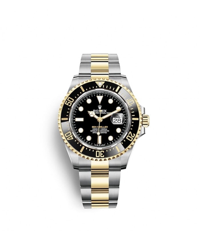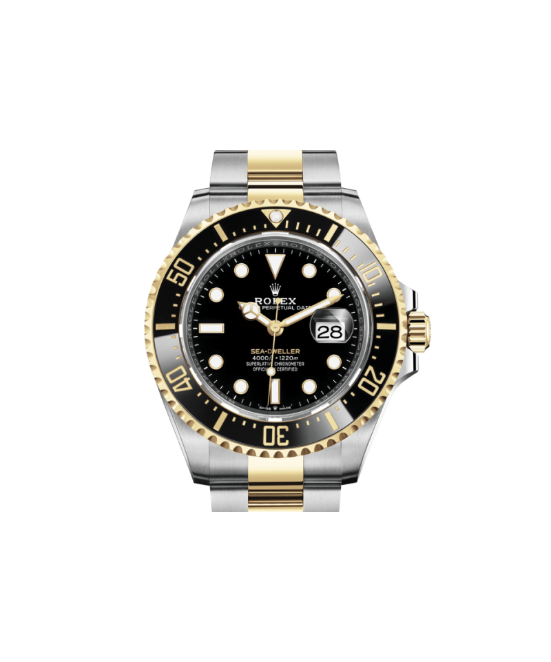 シードゥエラーのブラックダイアルにはロレックス プロフェッショナルモデルにのみ採用される大きな針とアワーマーカーが搭載されている。ブラックダイアルには、_Sea-Dweller″の名前が18_ctイエローゴー_ルドを思わせるイエローカラーで記されている。2017年にアップデートされたシードゥエラーでは、この名前は初代モデルの伝統を受け継ぎレッドで記されていた。ダイアルには、暗闇でも優れた視認性を提供する革新的な夜光塗料、クロマライトを使用。標準的な夜光塗料の2倍にあたる最長8時間にわたり、ブルーの発光が持続する。