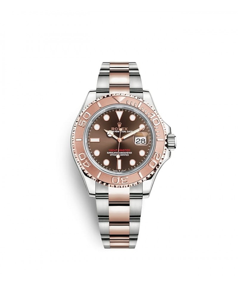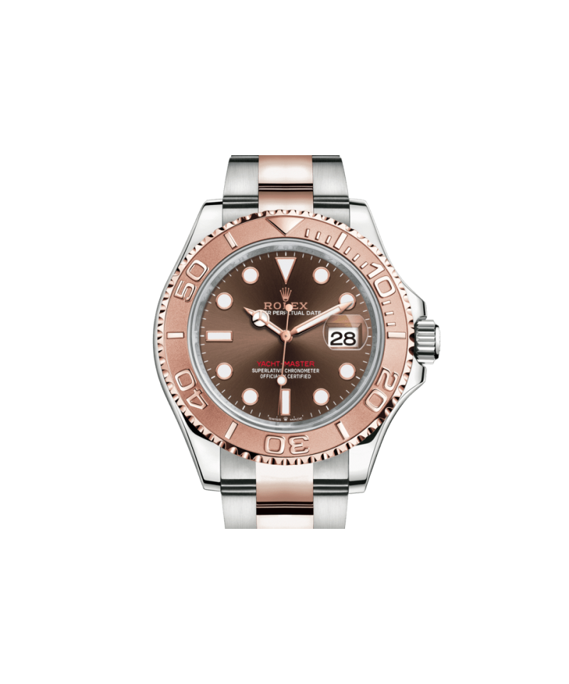 ヨットマスターの60分目盛り入り両方向回転ベゼルには希少な素材が使用されている。サンドブラスト仕上げのマット地に、レイズド仕上げの数字と目盛りが際立つ。
