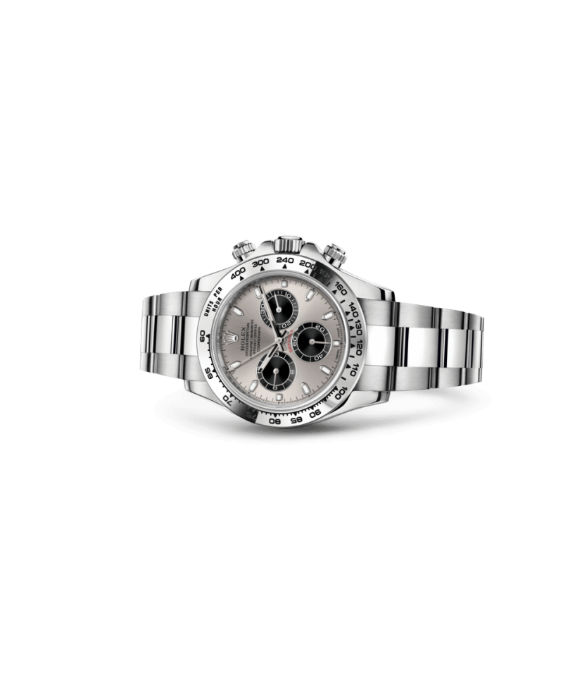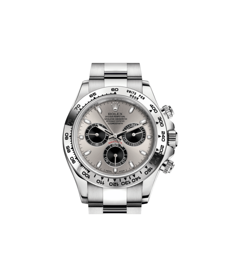 タキメーター目盛り、および3つのカウンターとプッシャーを備えたコスモグラフ デイトナは、耐久レースドライバーの究極の計時ツールとなるようにデザインされた。べゼルは、経過時間に基づき所定の距離間の平均速度を示すタキメーター目盛りを備えている。