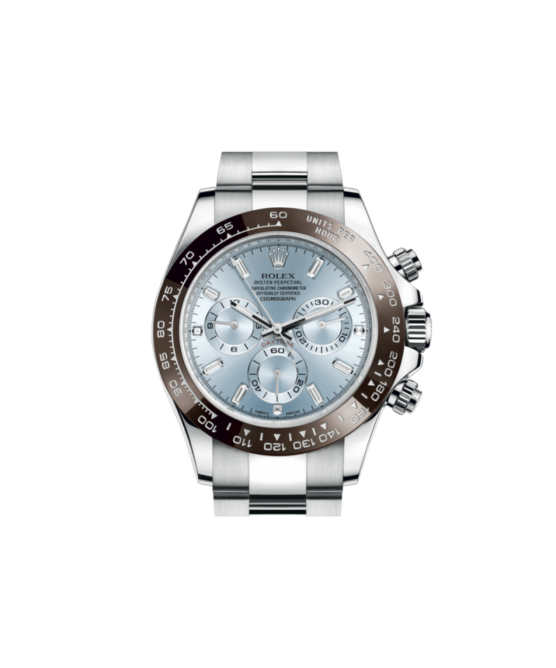 アイスブルーダイアルはロレックスのプラチナ製時計の控えめかつ特別なシグネチャーである。ロレックスは最高級の腕時計にふさわしい最も高貴な金属であるプラチナを使用している。