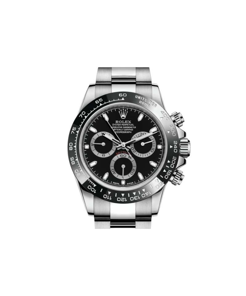 モデルの大きな特徴は、最大時速400マイルまたは時速の平均速度を測定するためのタキメーター目盛りが刻まれたベゼルである。ハイテクと洗練された美学を融合させたブラック ベゼルは、ブラック プレキシガラス製ベゼルインサートが取り付けられた1965年モデルを彷彿とさせる。