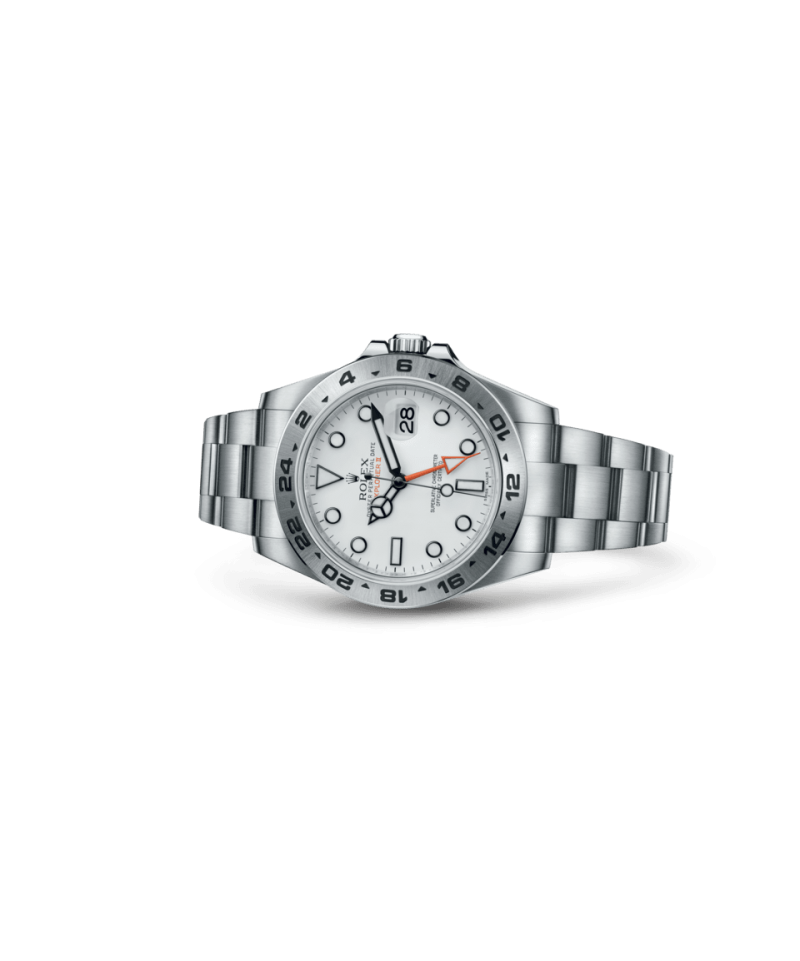 エクスプローラーⅡは、日付表示、オレンジ色の24時間針、24時間目盛り入りベゼルを備え、昼夜の区別を可能にし、洞窟学者、火山学者、極地探検家に愛用される時計となった。アワーマーカーや時針にはクロマライト ディスプレイ (青色発光の長時間継続ルミネッセンス)を採用している。