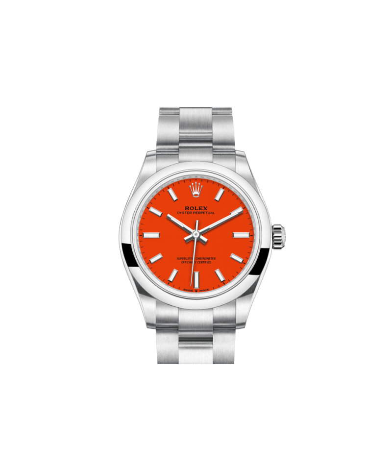 ロレックスのスチール製モデルのケースには、オイスタースチールが使用されている。オイスタースチールは904Lスチール系統に属し、最も一般的には、最高の耐蝕性が不可欠なハイテク産業や航空宇宙、化学産業で使用されている。オイスタースチールは非常に耐久性があり、研磨性にも優れている。どれほど過酷な環境下でも、その美しさを保ち続ける。