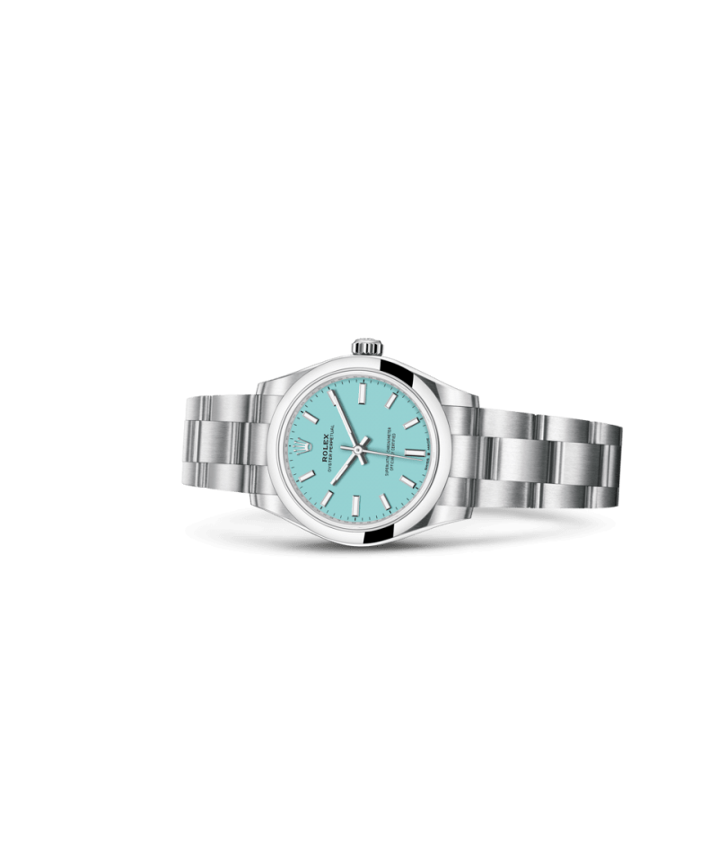 オイスターブレスレットは、形と機能、美しさと技術の完璧な融合である。1930年代後半に初めて発表された極めて堅牢で優れた金属のブレスレットで、幅広の平らな3列リンクで構成された、オイスターコレクションの中で最も一般的なブレスレットである。オイスター パーペチュアルモデルでは、オイスターブレスレットにオイスタークラスプが採用されている。