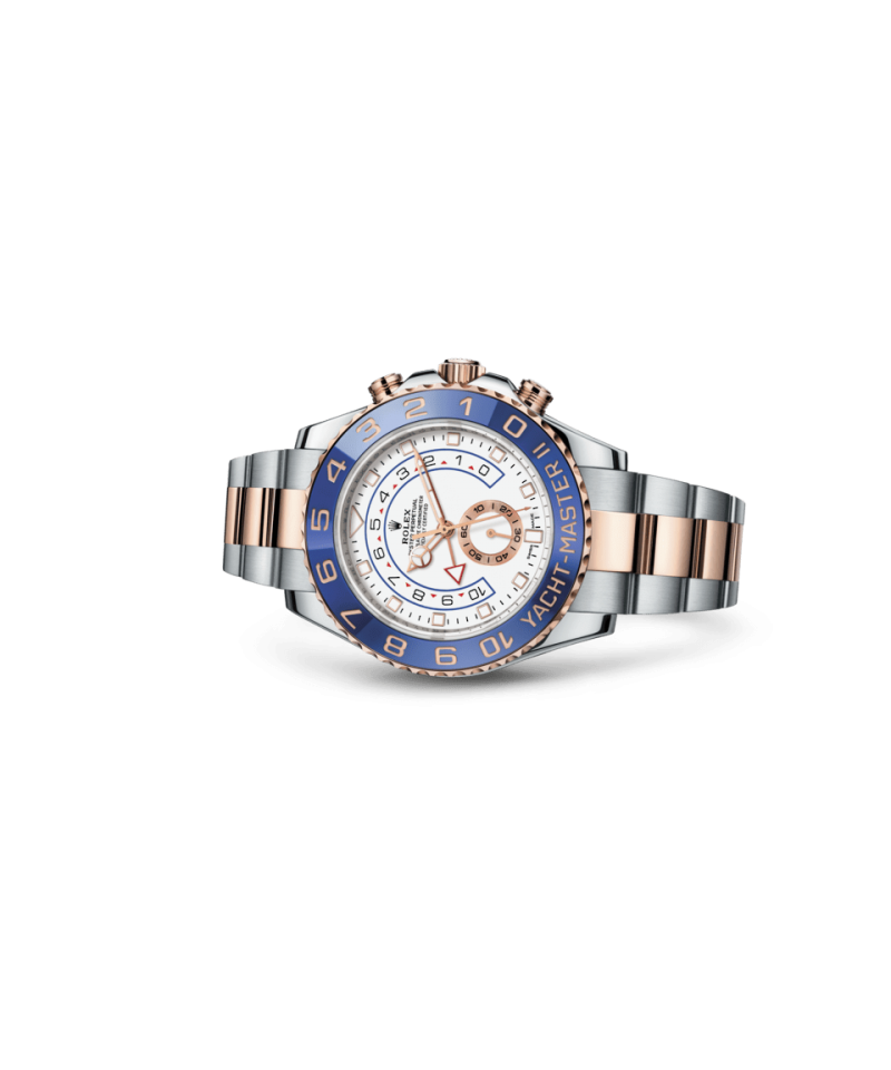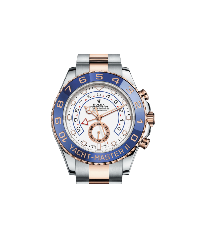 ヨットマスターⅡは、ロレックスのプロフェッショナルモデルの特徴である新しい針が採用された新ダイアルを搭載。視認性が向上し、デザインの美しさが際立つ。新しいダイアルのアワーマーカーは12 時位置が三角形、6 時位置が長方形で、より直感的に時刻を読み取ることができる。時針の先端は発光性のディスク型になり、分針とはっきり区別することが可能だ。ヨットマスターⅡは 1 分〜 10分までのカウントダウンをプログラムできる機能が搭載されている。プログラミングは機械に記憶されるため、リセットすると前回の設定に戻る。レース開始後は、公式カウントダウンに合わせ、瞬時に同期させることができる。
