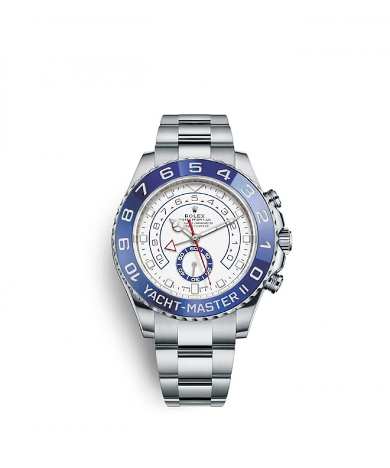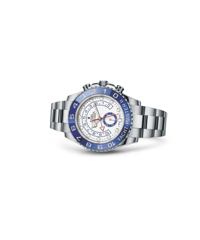 ヨットマスターⅡは、ロレックスのプロフェッショナルモデルの特徴である新しい針が採用された新ダイアルを搭載。視認性が向上し、デザインの美しさが際立つ。新しいダイアルのアワーマーカーは12 時位置が三角形、6 時位置が長方形で、より直感的に時刻を読み取ることができる。時針の先端は発光性のディスク型になり、分針とはっきり区別することが可能だ。ヨットマスターⅡは 1 分〜 10分までのカウントダウンをプログラムできる機能が搭載されている。プログラミングは機械に記憶されるため、リセットすると前回の設定に戻る。レース開始後は、公式カウントダウンに合わせ、瞬時に同期させることができる。