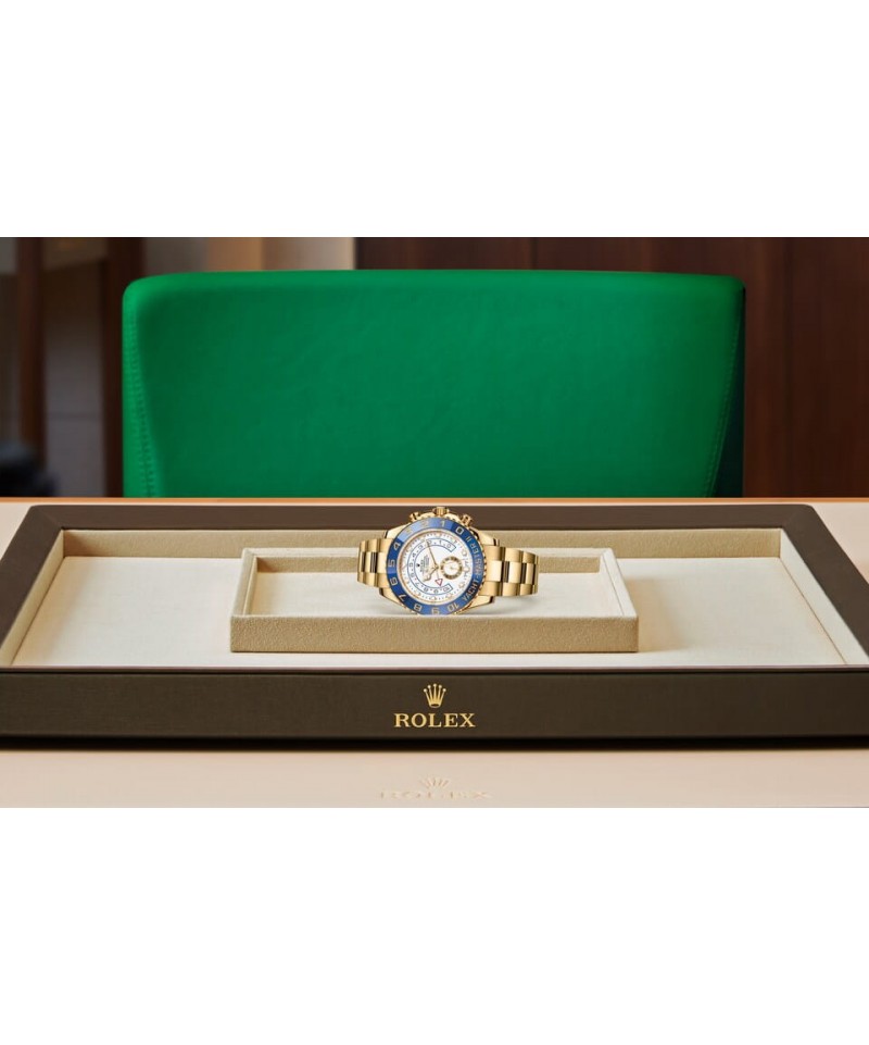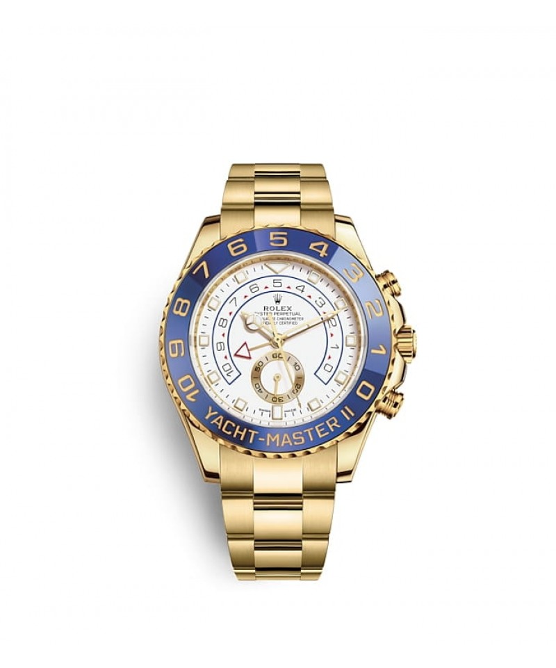 ヨットマスターⅡは、ロレックスのプロフェッショナルモデルの特徴である新しい針が採用された新ダイアルを搭載。視認性が向上し、デザインの美しさが際立つ。新しいダイアルのアワーマーカーは12 時位置が三角形、6 時位置が長方形で、より直感的に時刻を読み取ることができる。時針の先端は発光性のディスク型になり、分針とはっきり区別することが可能だ。ヨットマスターⅡは 1 分〜 10分までのカウントダウンをプログラムできる機能が搭載されている。プログラミングは機械に記憶されるため、リセットすると前回の設定に戻る。レース開始後は、公式カウントダウンに合わせ、瞬時に同期させることができる。